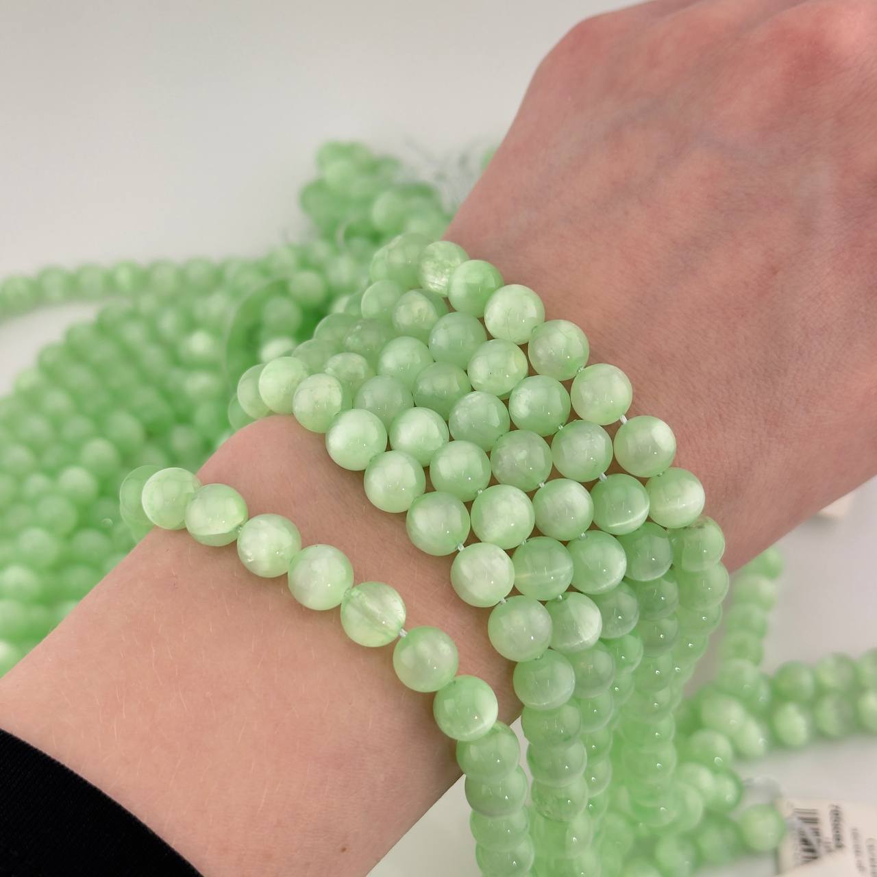 Бусины Селенит цвет бледно-зеленый размер 6мм 8мм 10мм натуральный камень